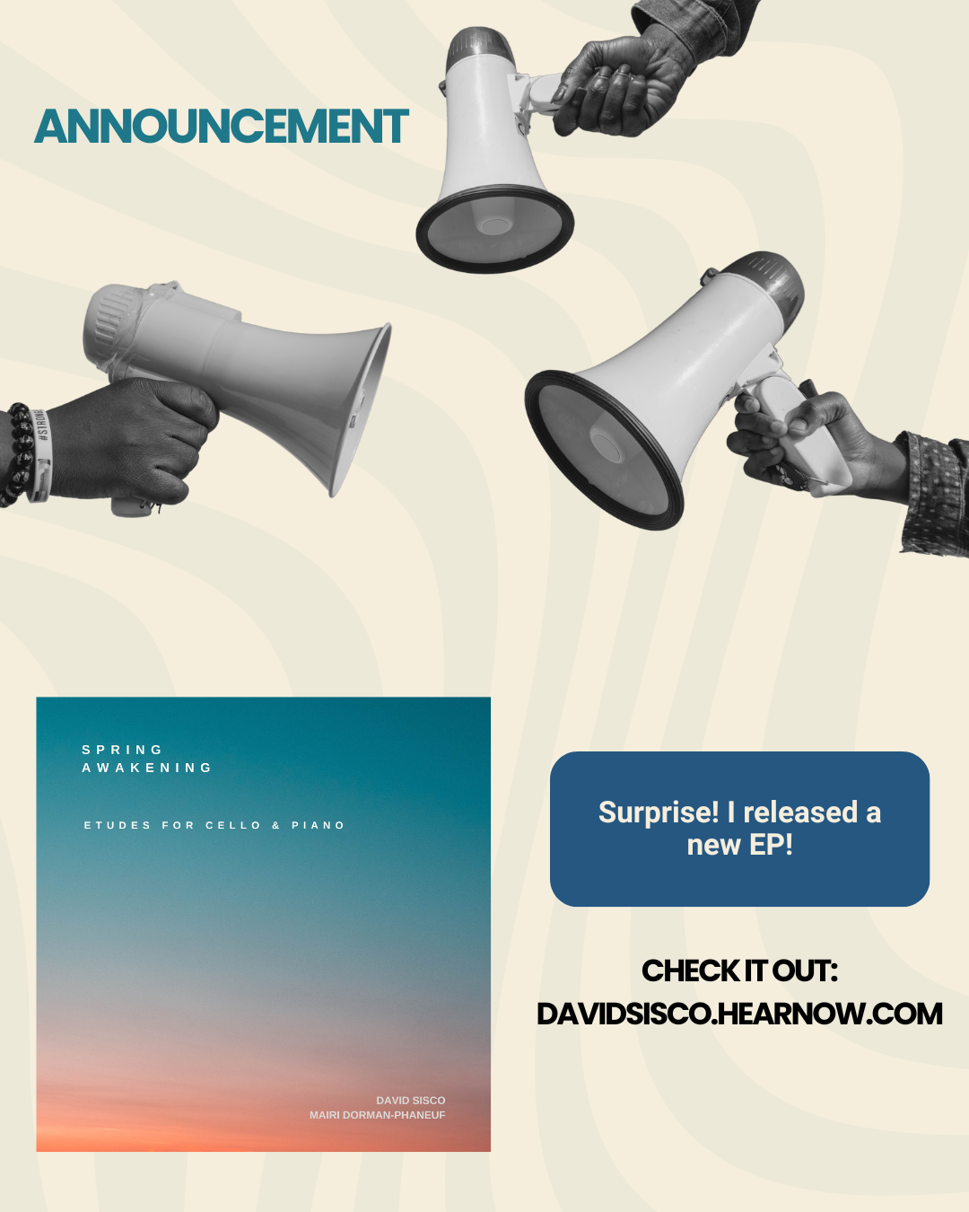 Check out David’s newly released EP: Spring Awakening: Etudes for Cello & Piano. This recording features eight of 19 etudes he wrote as incidental music for a production of the play Spring Awakening (1906), directed by Kevin Connell at Marymount Manhattan College in 2015. Cellist Mairi Dorman-Phaneuf and David play on the album, which was produced by David and Kevin, and engineered by Doug Oberhamer. You can listen to samples of the EP by clicking here.